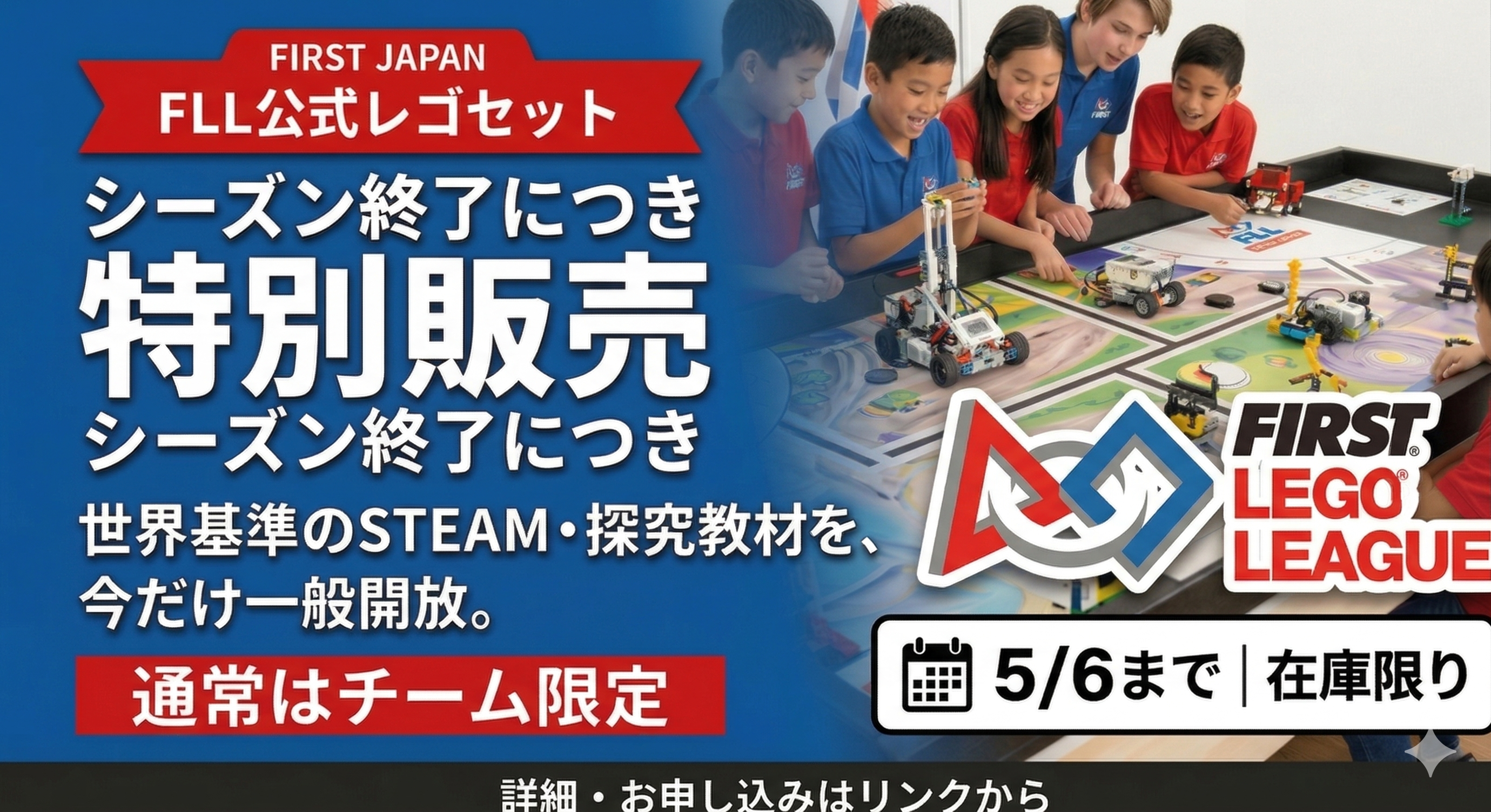 FIRST Japanでは、シーズン終了に伴い、FIRST® LEGO® League(FLL)の公式教材セットを特別価格で販売いたします。 今回ご案内するのは、今シーズン分に加え、過去シーズンのキットも含むFLL公式教 […] …続きを読む